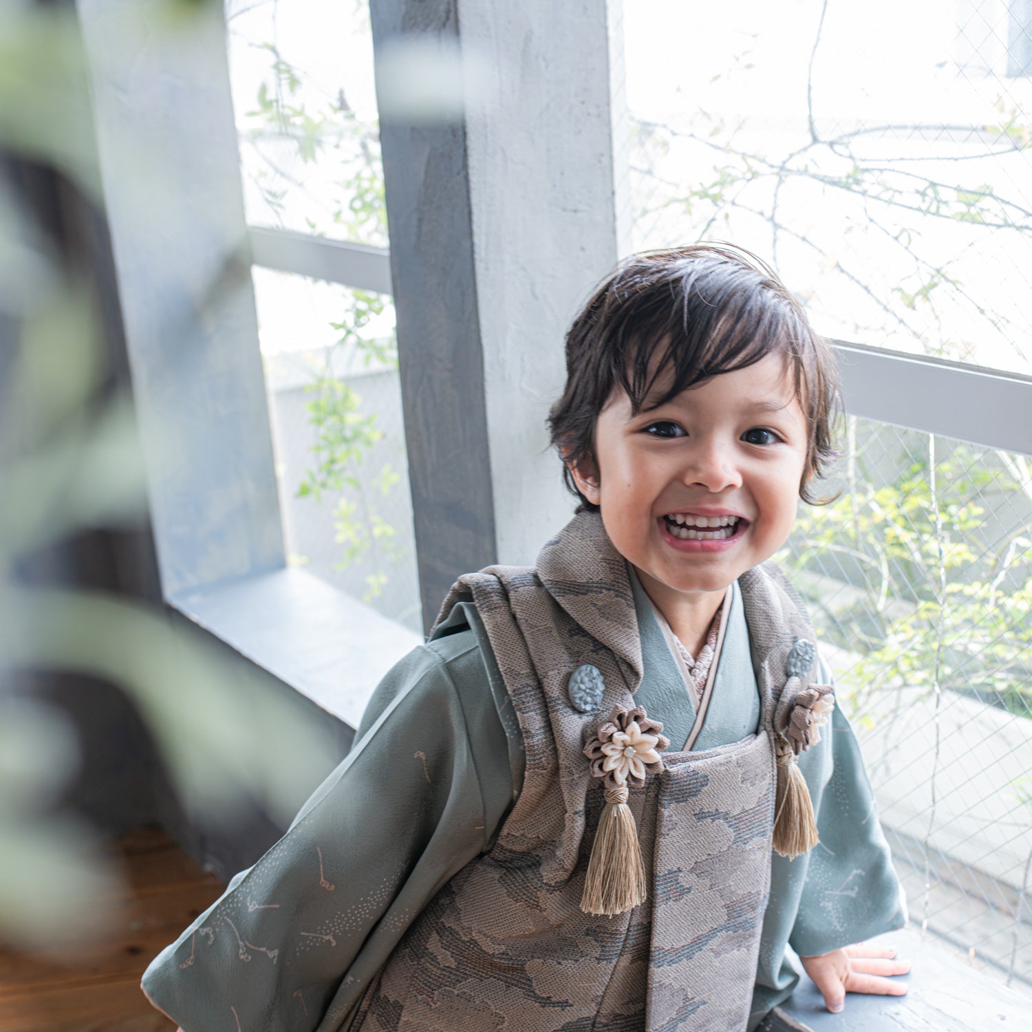 落ち着いた色合いが、小さなお子さまの可愛らしさを引き立てます。