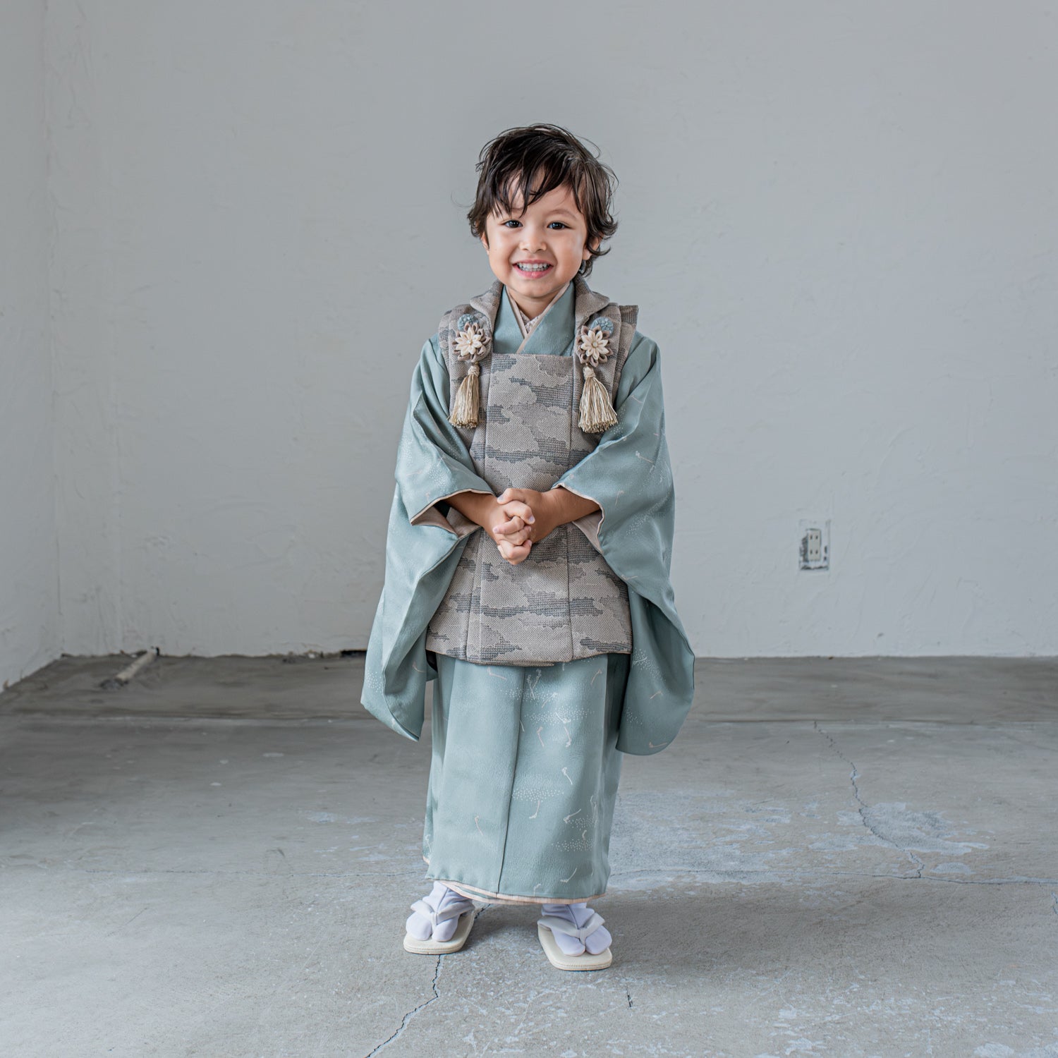 グレーの雲柄の被布を合わせ、大人っぽくおしゃれな印象に。