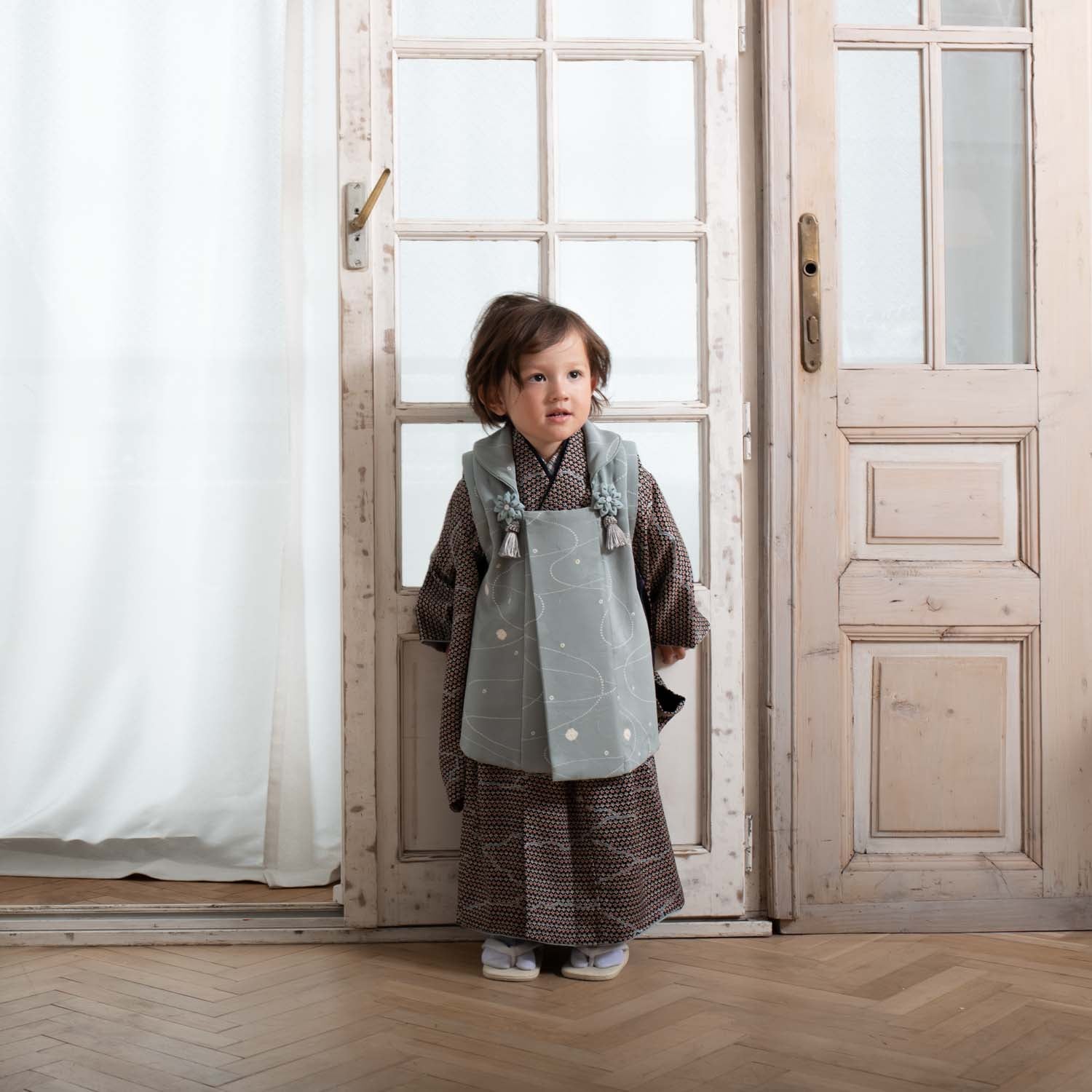 ヴィンテージの正絹着物を丁寧に仕立て直し、伝統とモダンを融合させた一点物の七五三衣装。