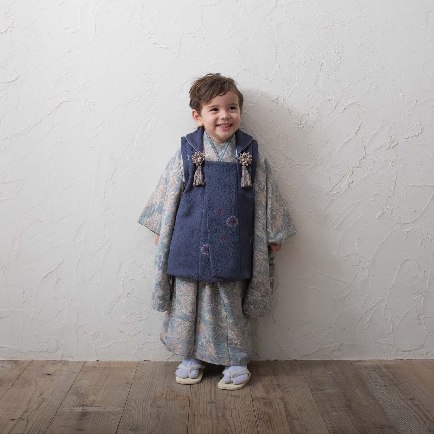 男の子用では珍しい、つまみ細工の被布飾りがさりげない華やかさを添えます。