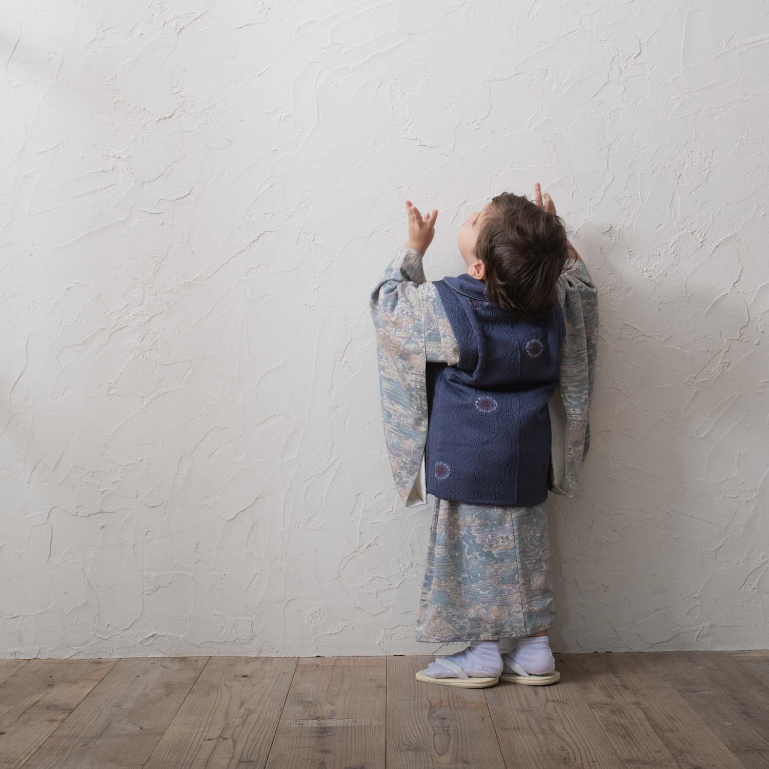 ヴィンテージの正絹着物を丁寧に仕立て直し、伝統とモダンを融合させた一点物の七五三衣装。