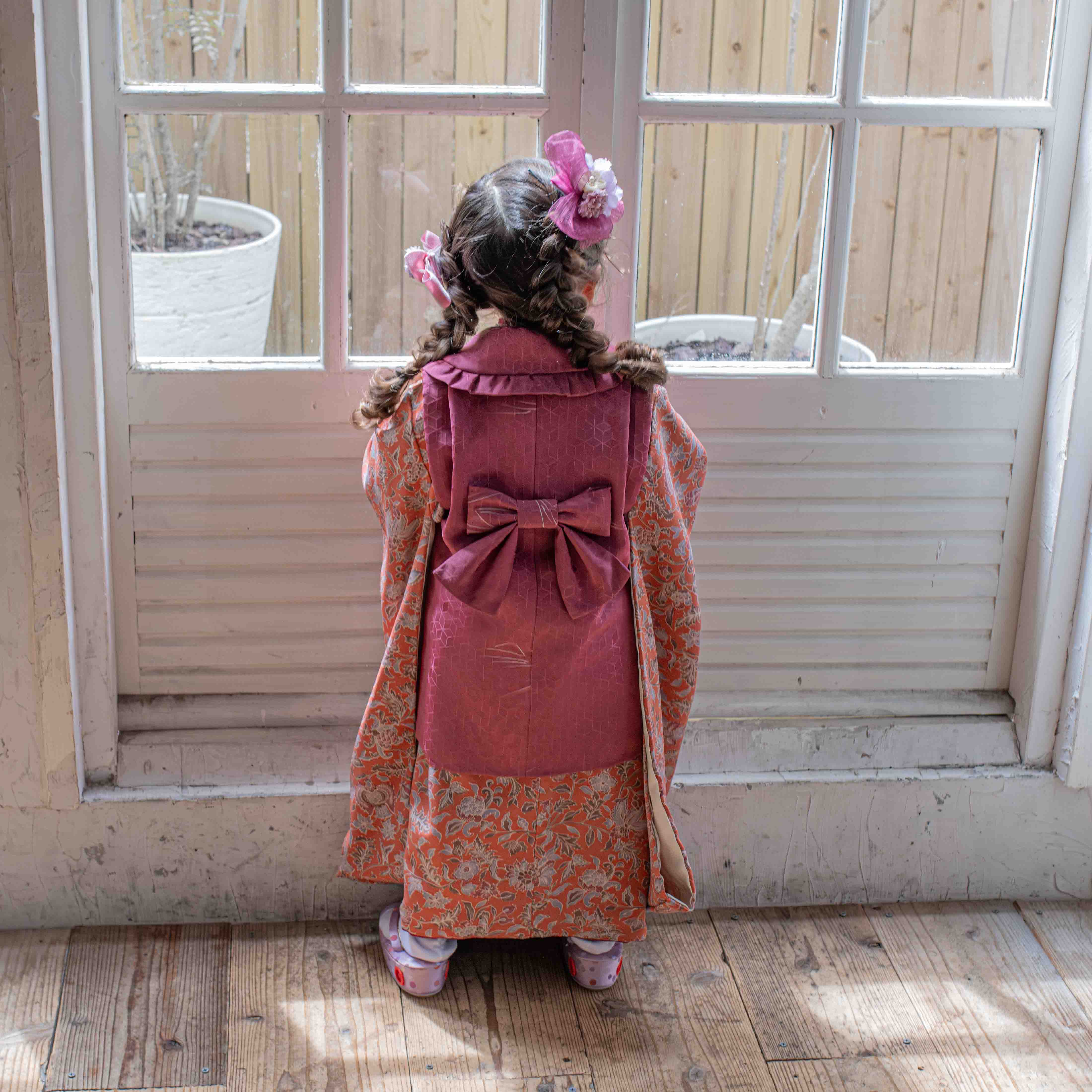 ヴィンテージの正絹着物を丁寧に仕立て直し、伝統とモダンを融合させた一点物の七五三衣装。