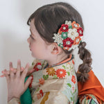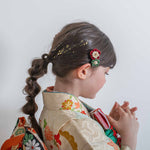 着物に合わせてデザインされた一点物の髪飾りは、華やかさと使いやすさを兼ね備えています。