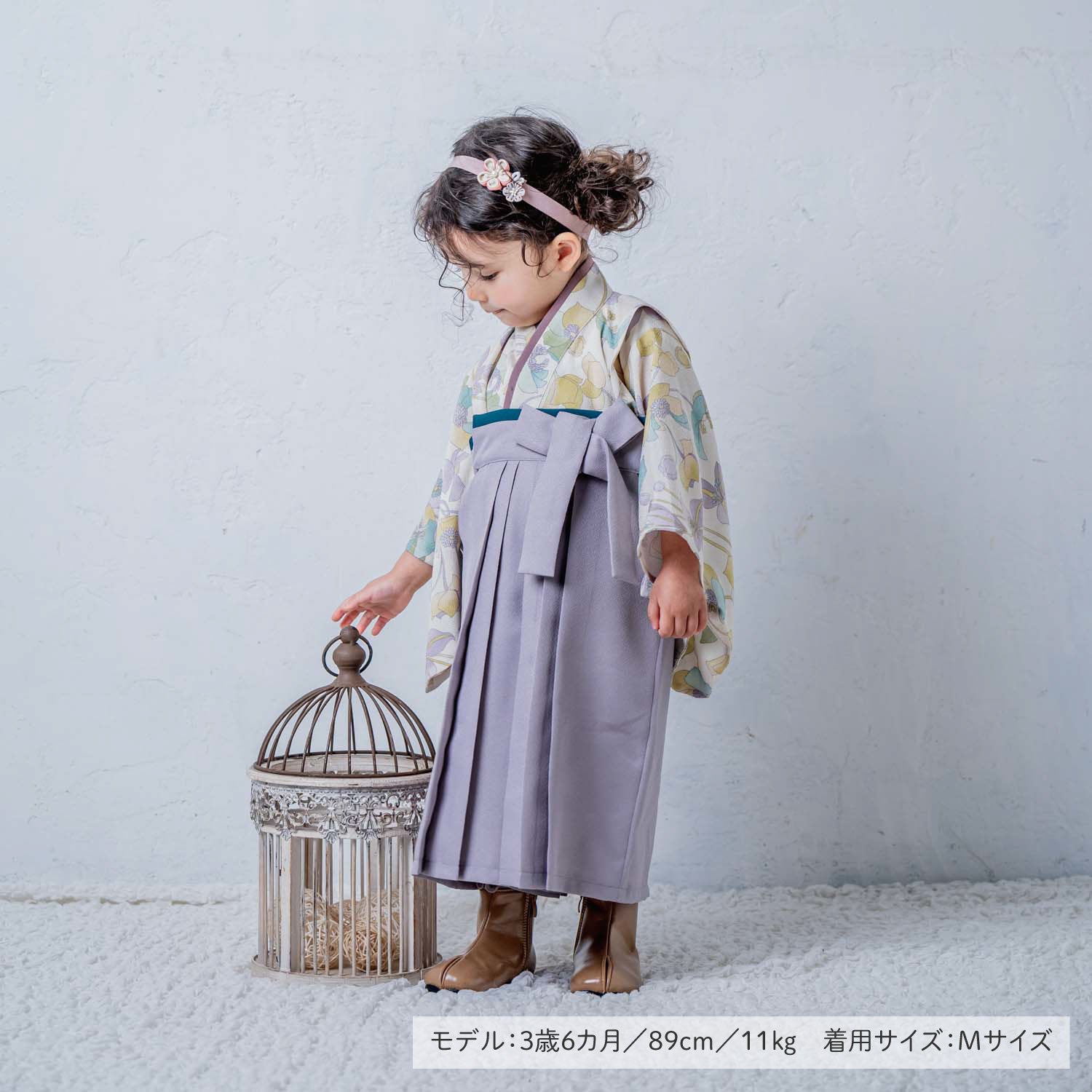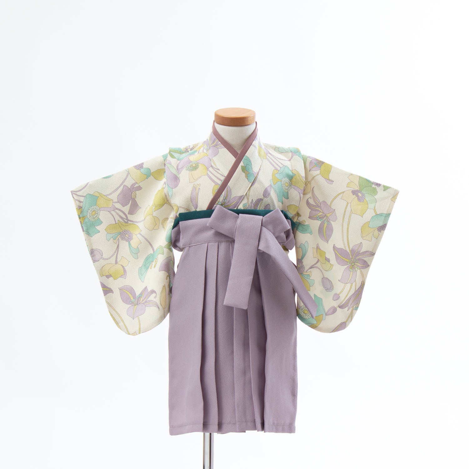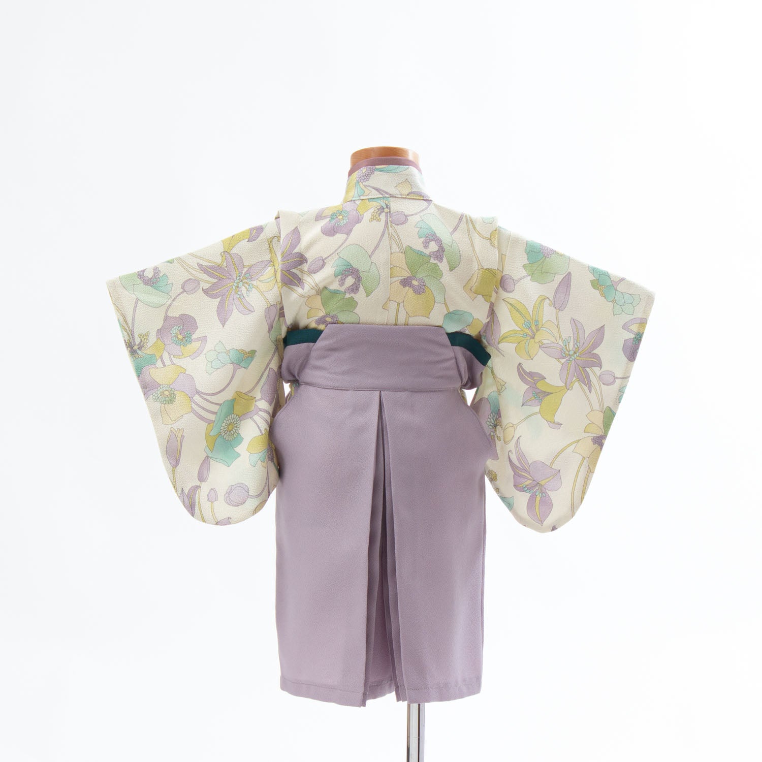 ラベンダー色の袴を合わせ、可愛らしさが残るシックで上品な一着です。