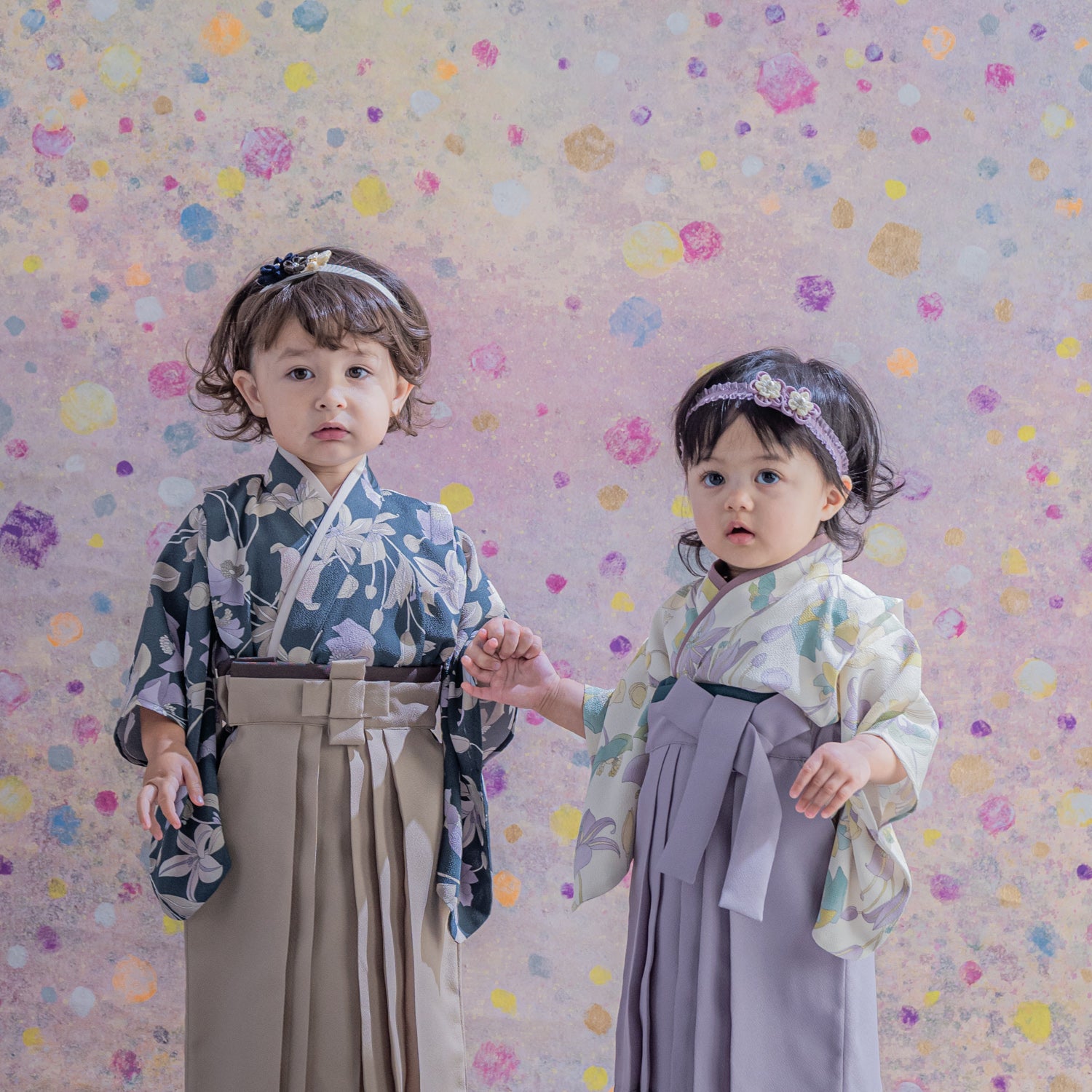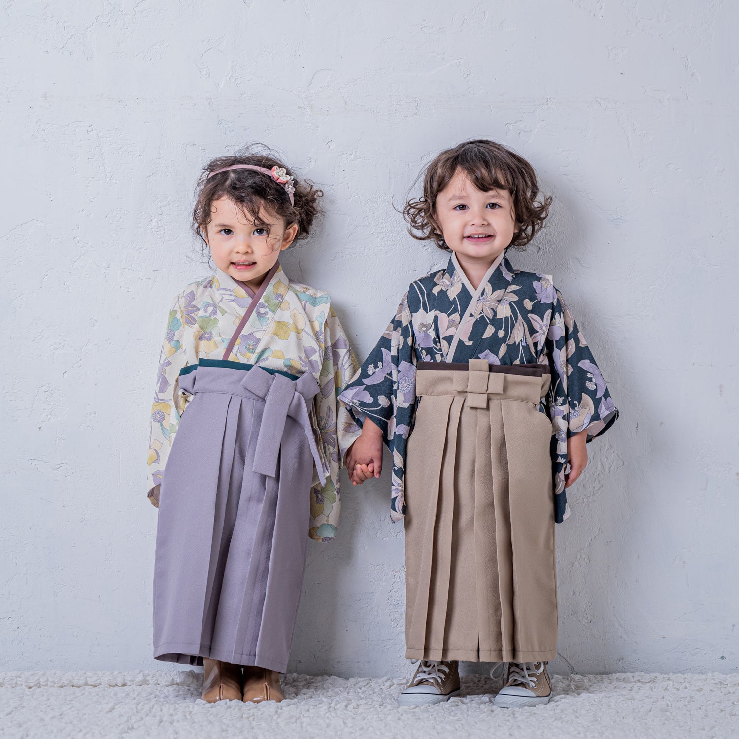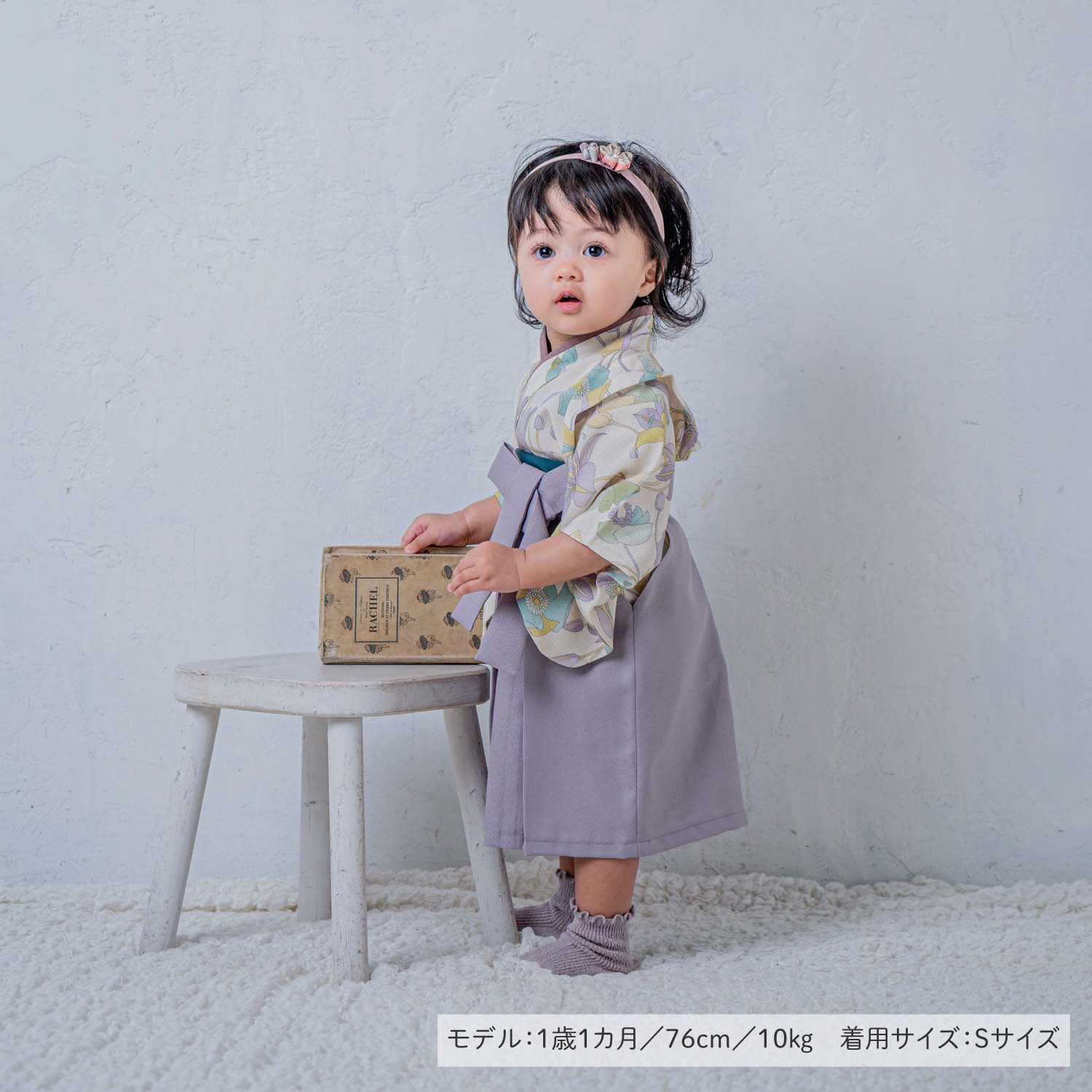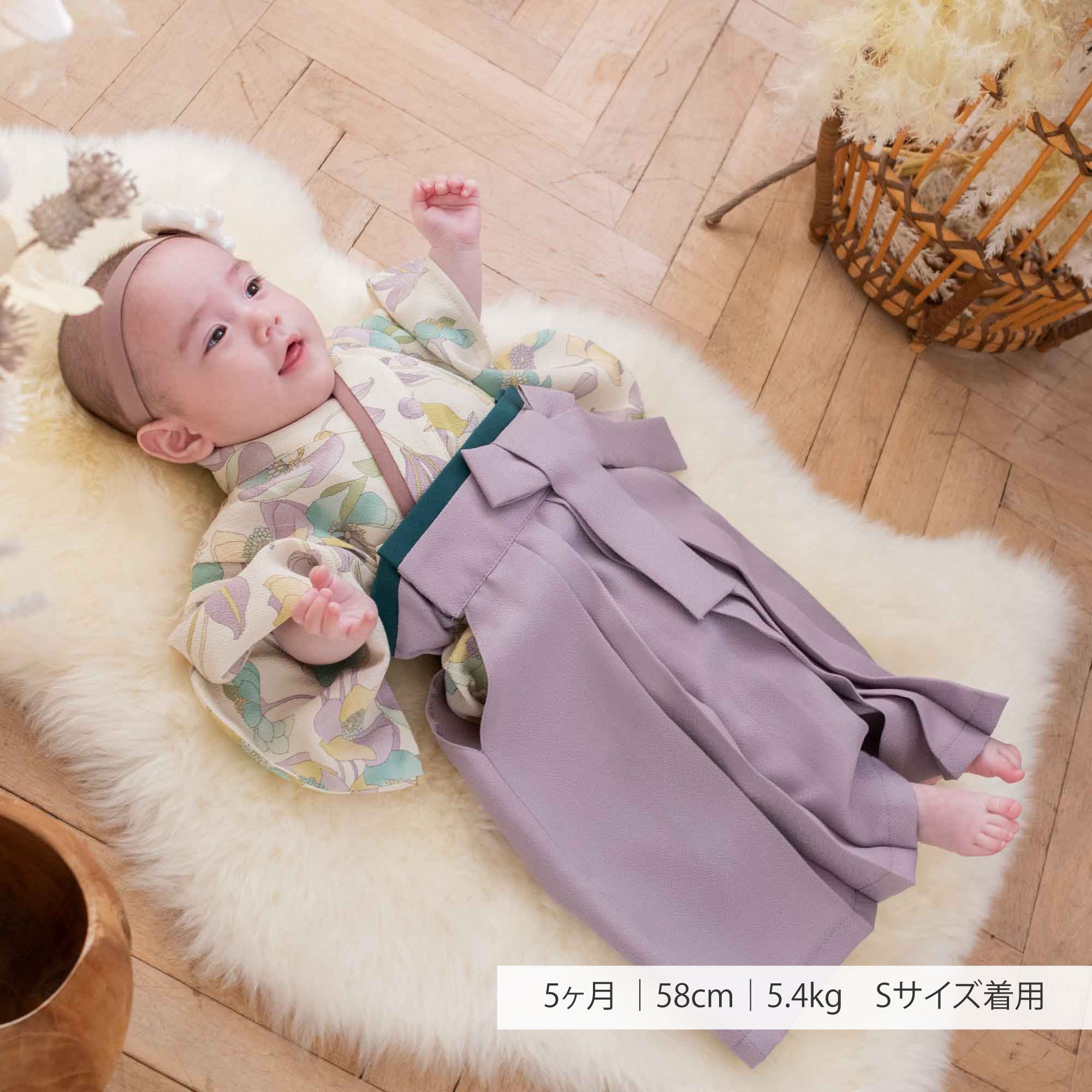 ラベンダー色の袴を合わせ、可愛らしさが残るシックで上品な一着です。