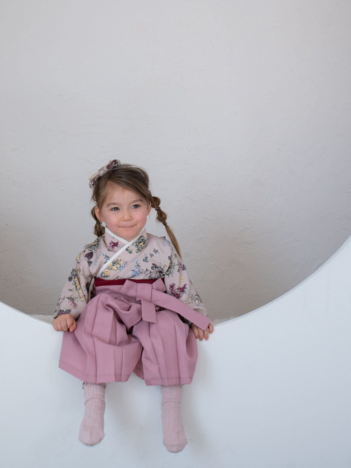 上下セパレートで完全に分かれているので、ウエスト位置が成長によって変わっても、袴の位置を調整することで長く着られます。