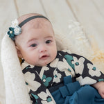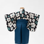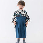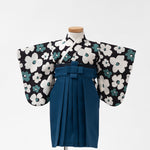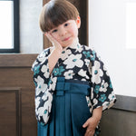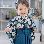 黒地に大小様々な白い花が咲き乱れ、ブルーグリーンの花がアクセントとなる、洗練された和モダンデザイン。 特別なお祝い事にぴったりの一着で、男の子のハレの日を華やかに彩ります。 ※柄の出方には個体差があります。 国産の「二越ちりめん」生地は、やわらかく適度な張りがあり、シワになりにくく肌離れの良い素材です。
