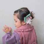 The hair ornament is a one-of-a-kind original designed to match the kimono.