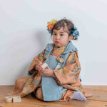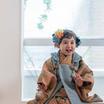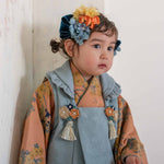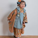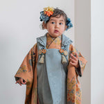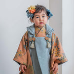 This unique Shichi-Go-San outfit is made by re-tailoring a vintage silk kimono to fit a child, combining traditional and modern elements.