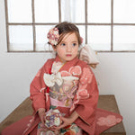 This unique Shichi-Go-San outfit is made by re-tailoring a vintage silk kimono to fit a child, combining traditional and modern elements.