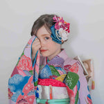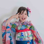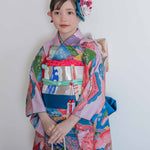 The obi belt is coordinated in a soft color to match the atmosphere of the kimono.