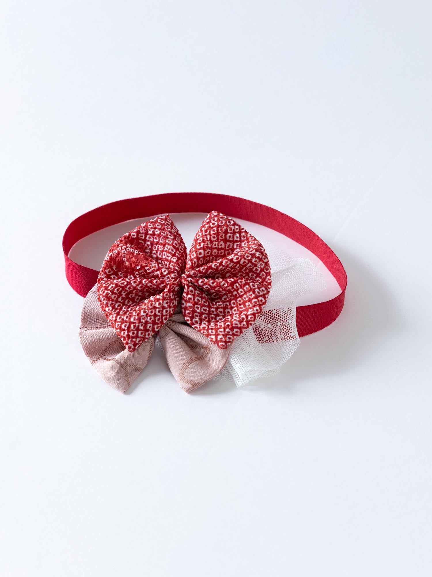 着物(古布)を解いて仕立てたリボンのヘアバンド。