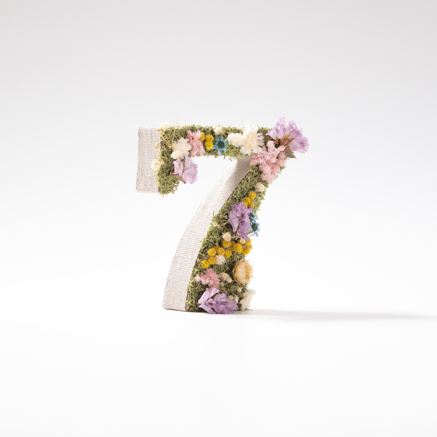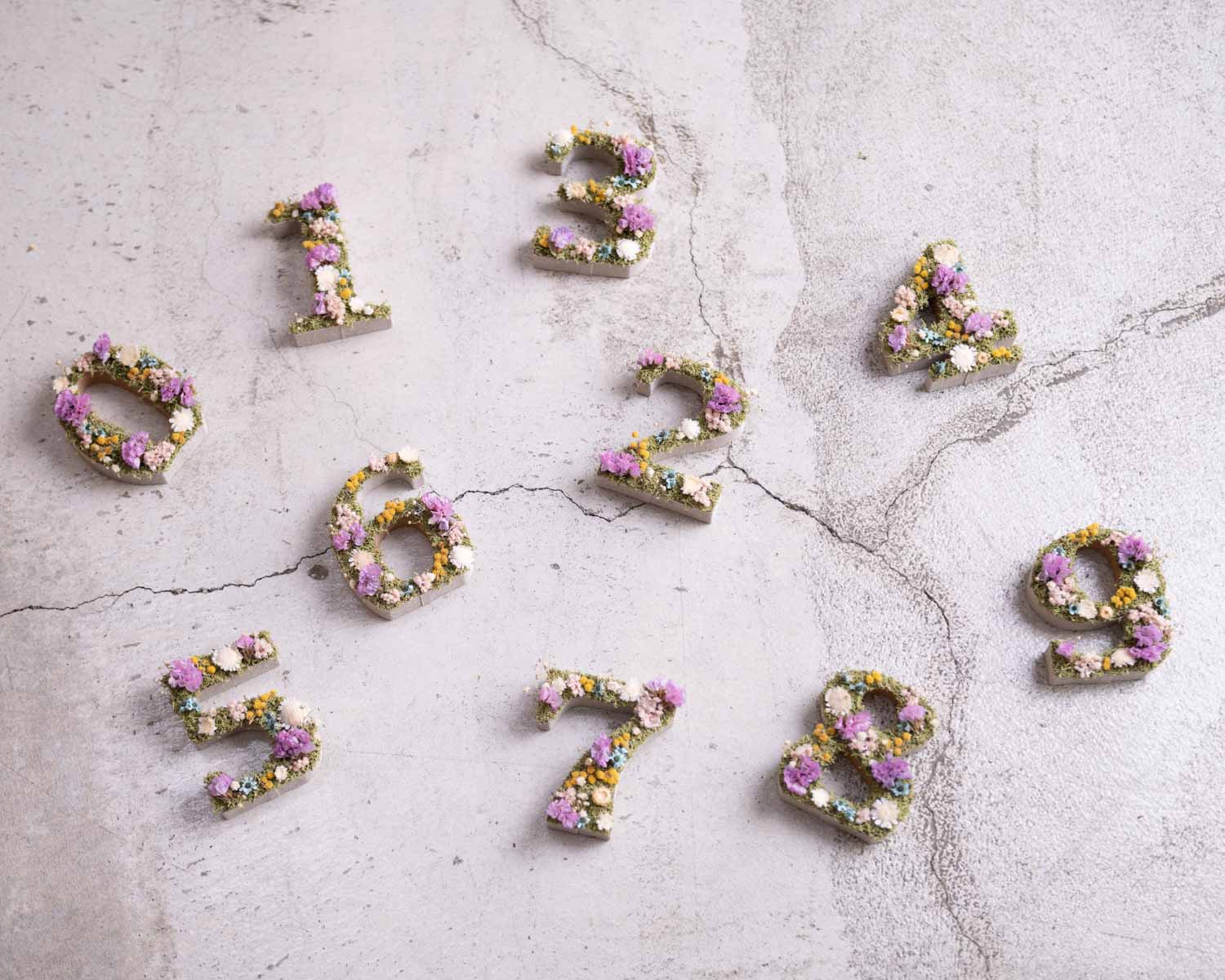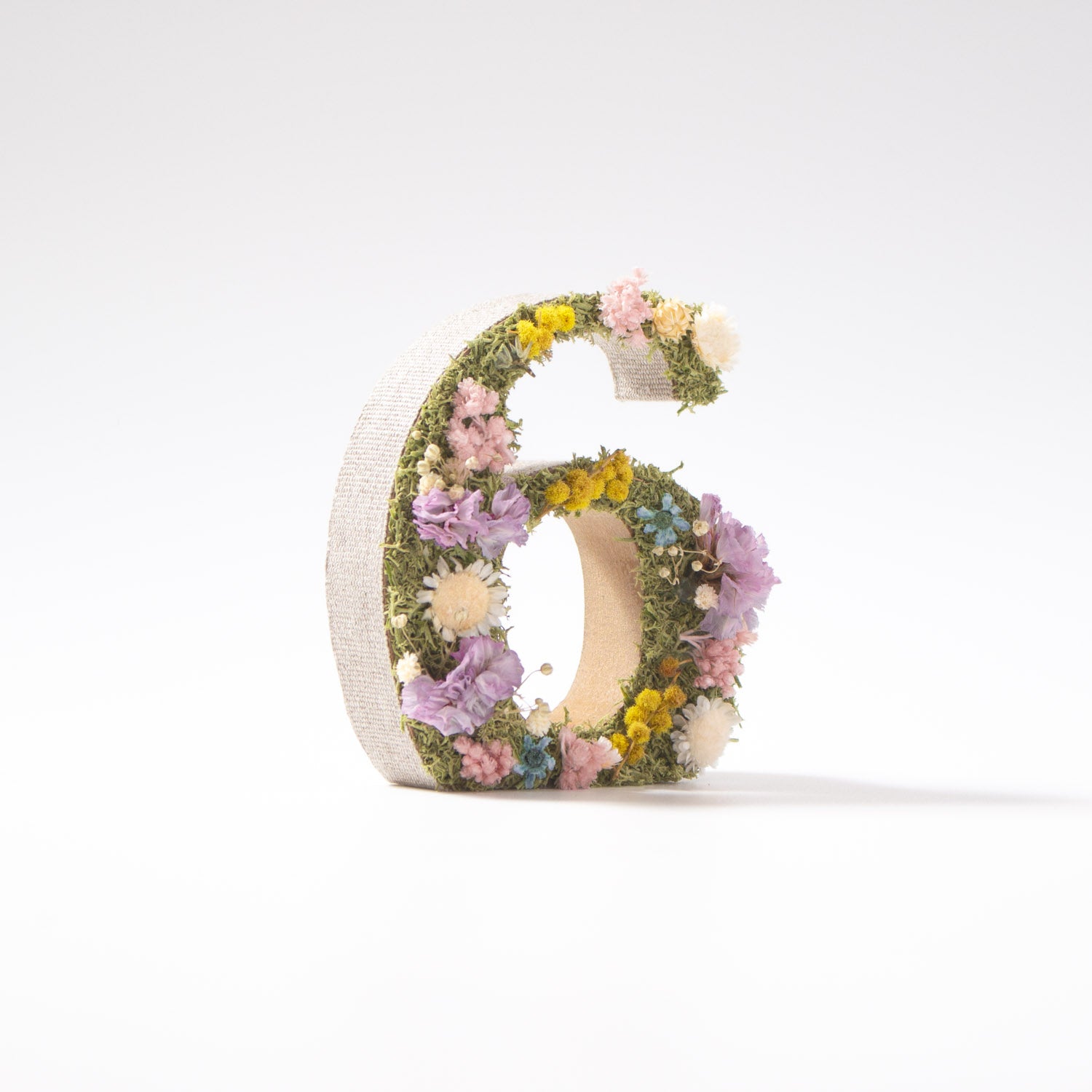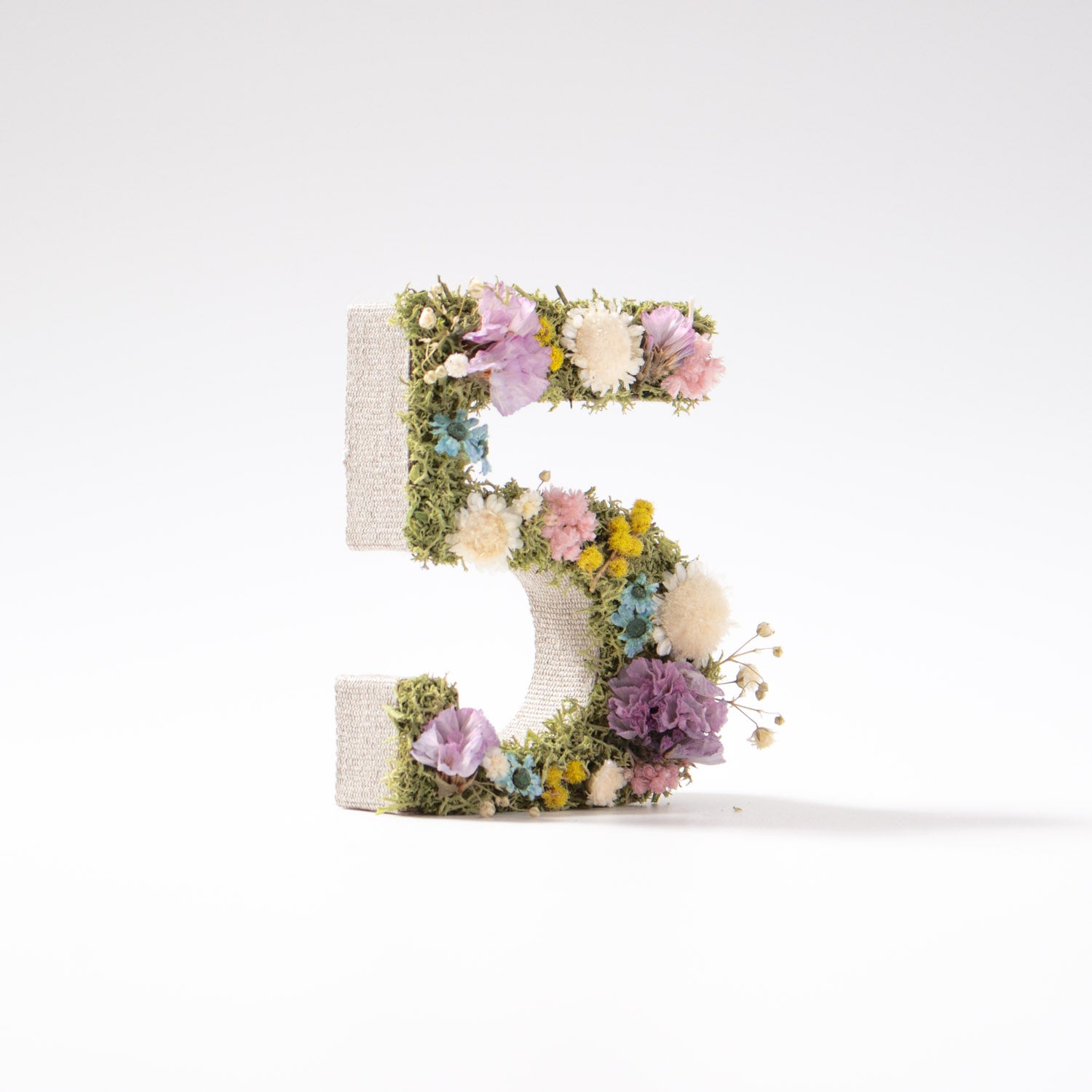 我们制作了一个带有大量干花的植物学数字字母横幅。