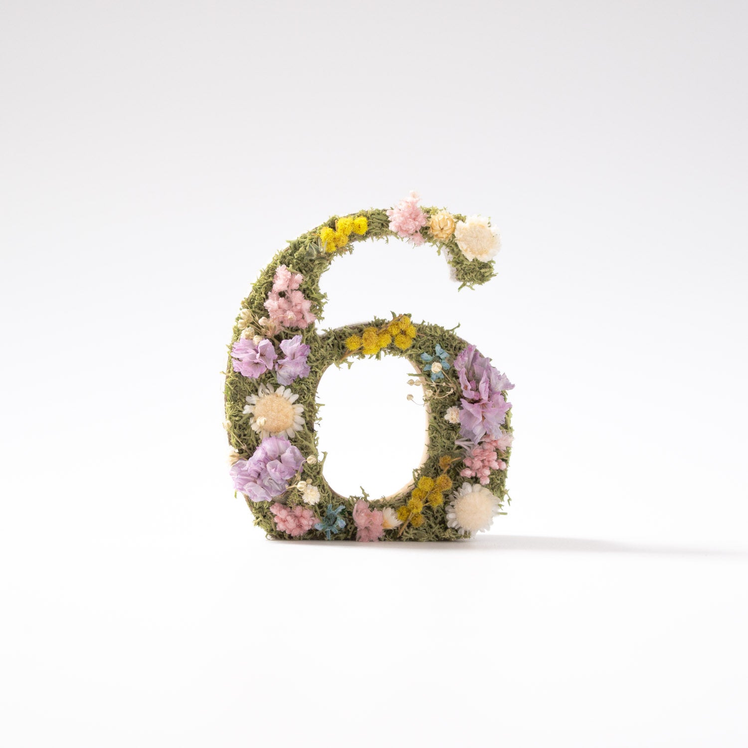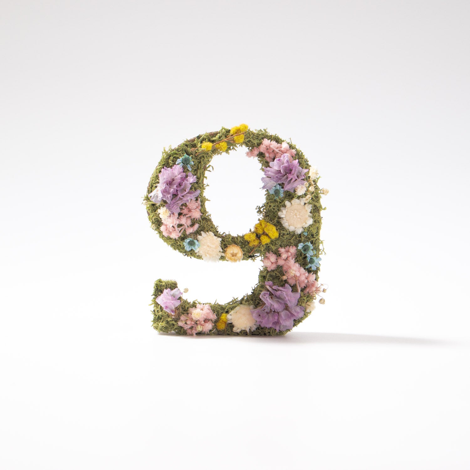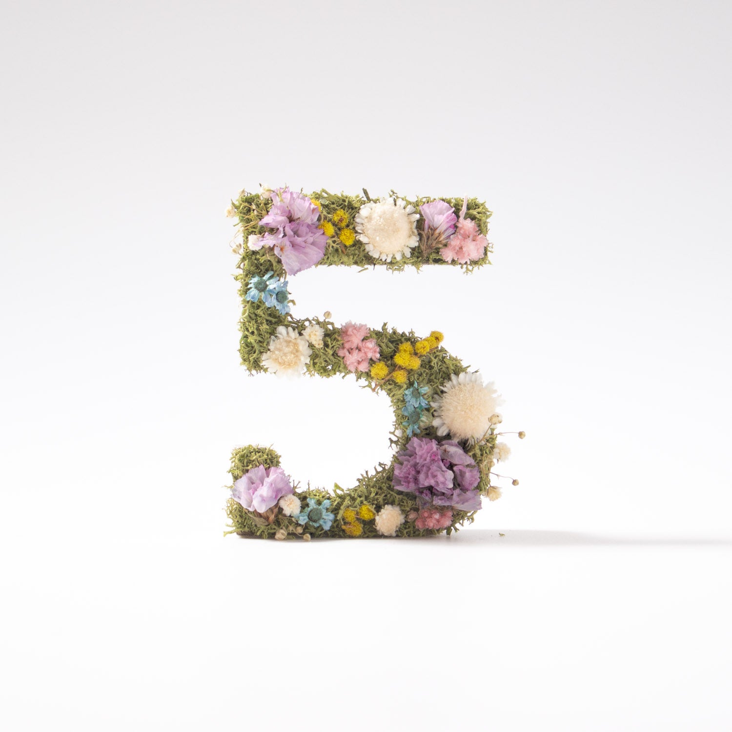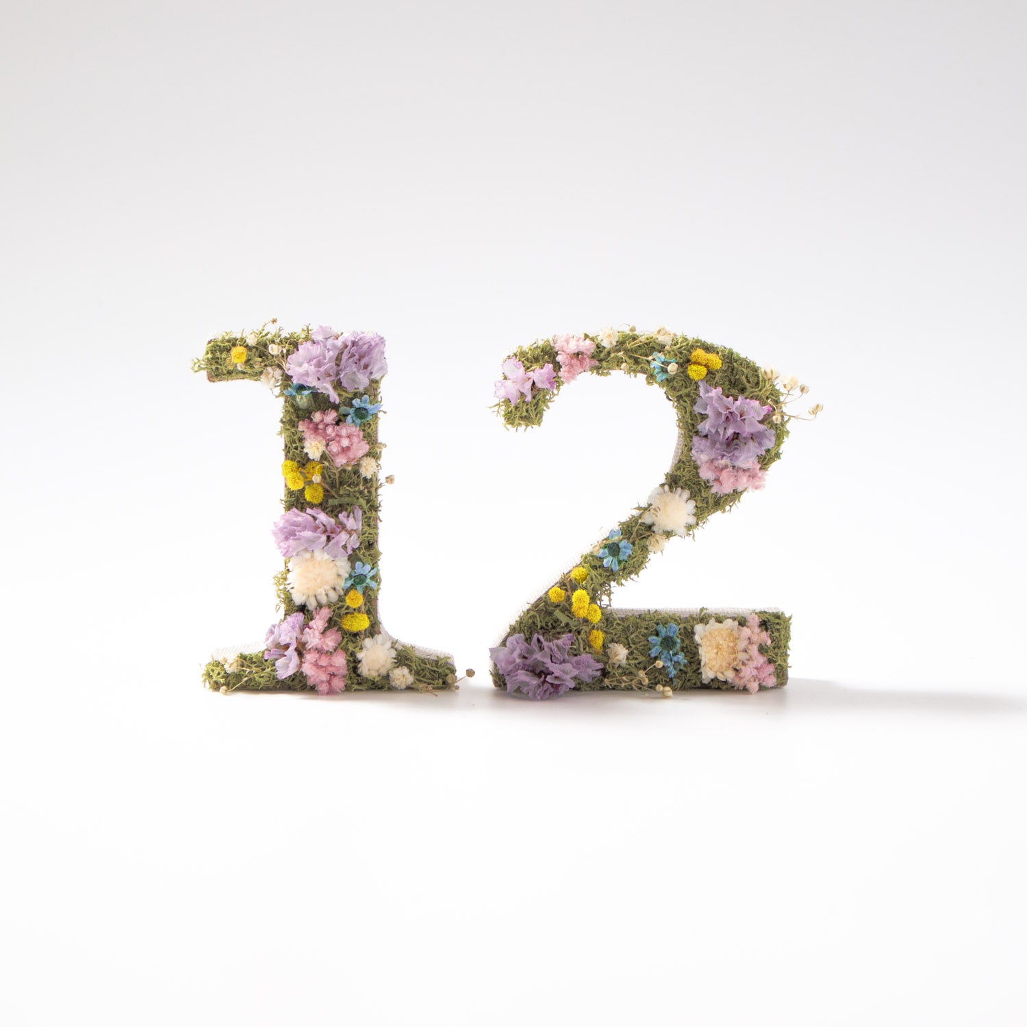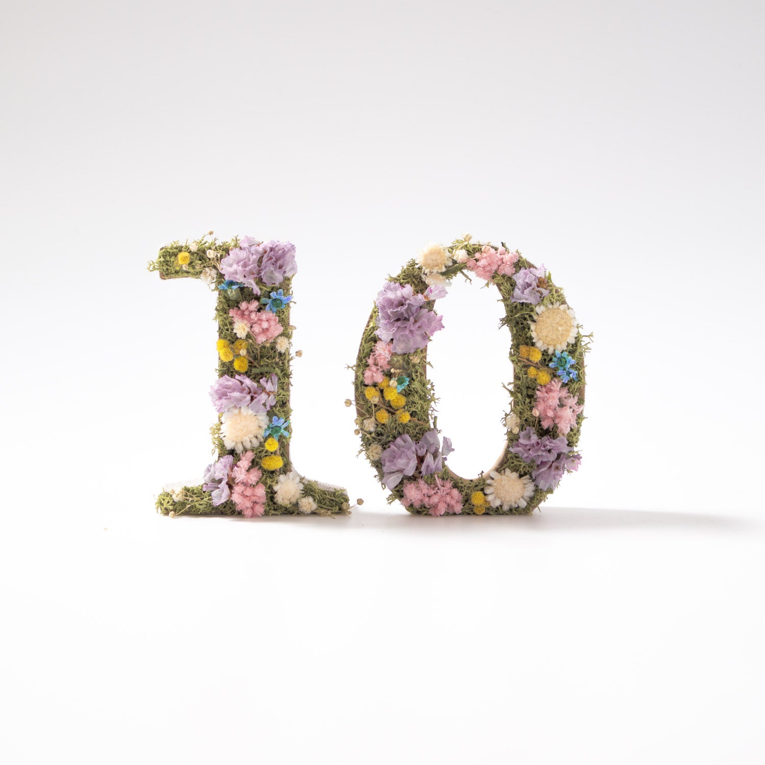 我们制作了一个带有大量干花的植物学数字字母横幅。