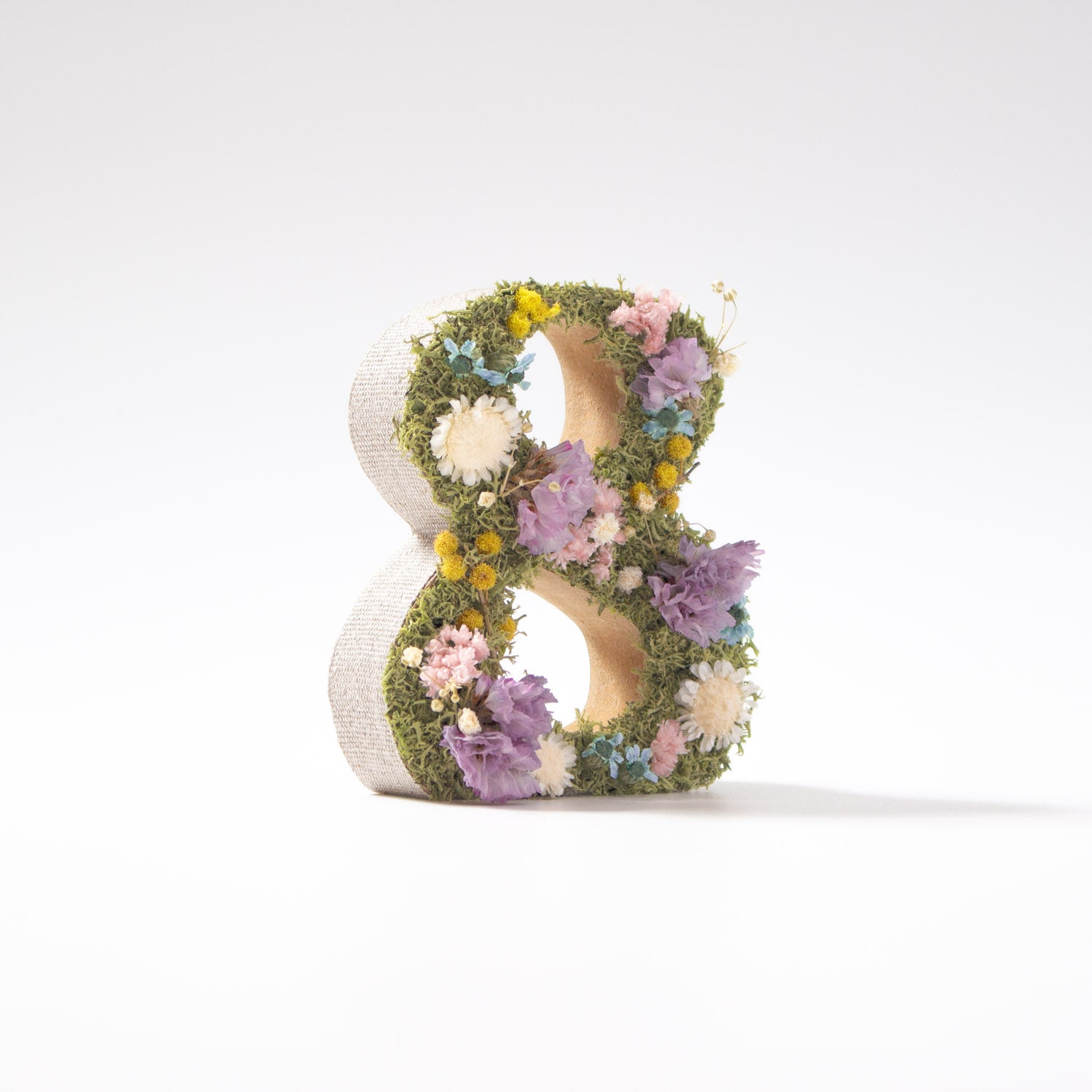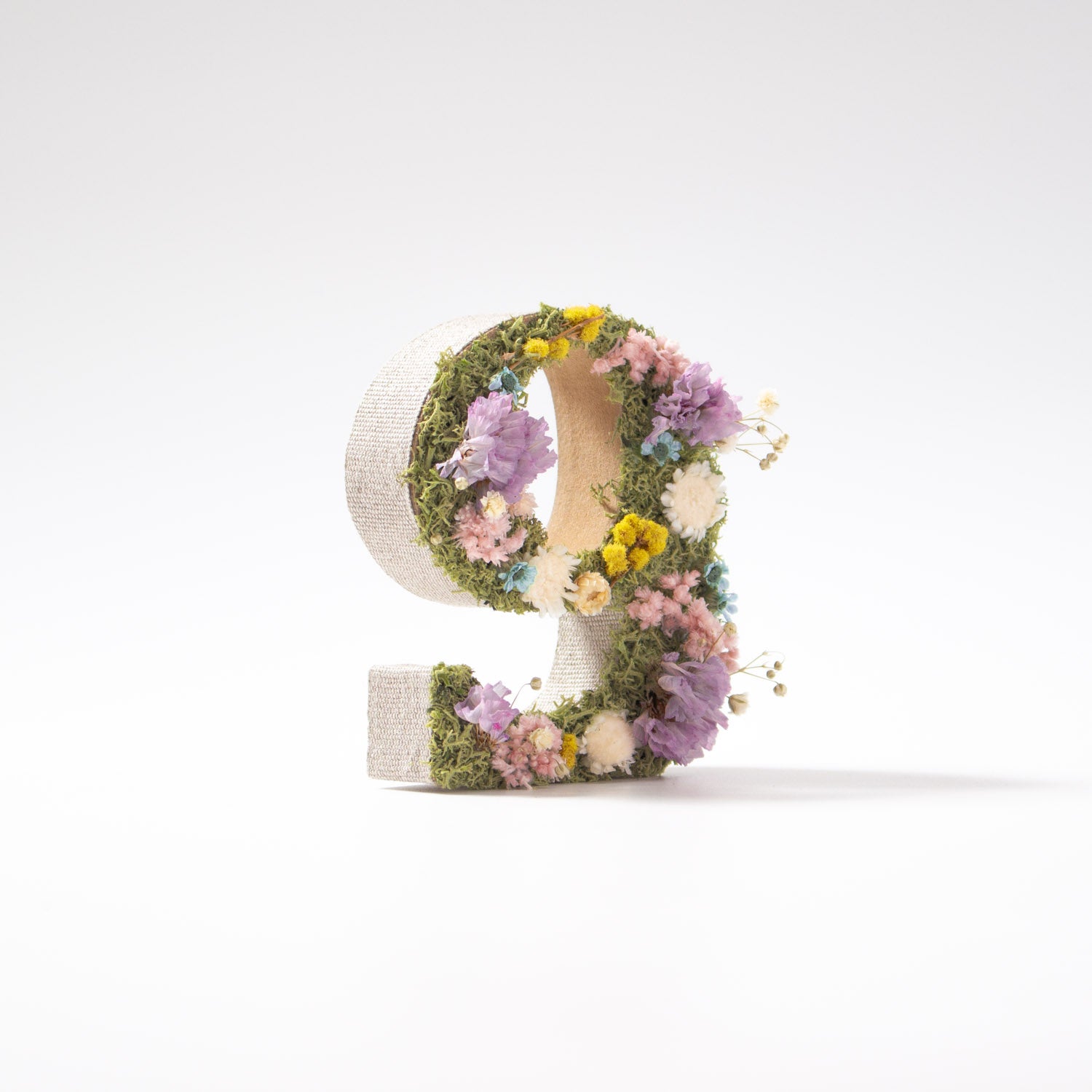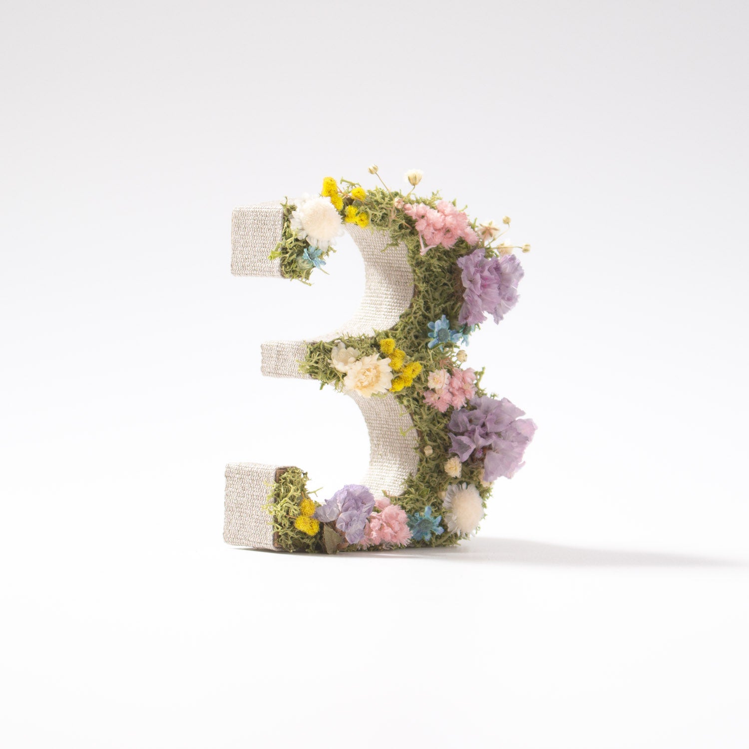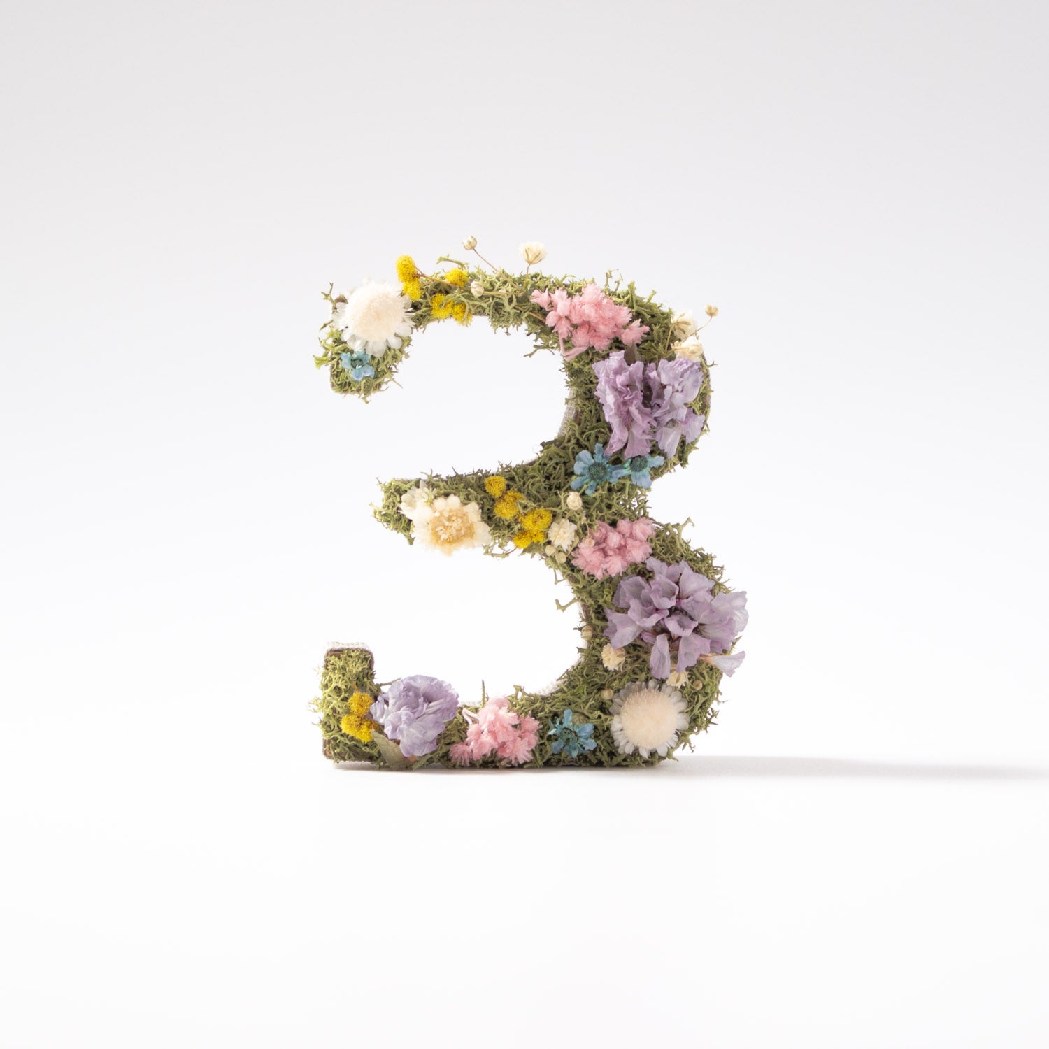 我们制作了一个带有大量干花的植物学数字字母横幅。